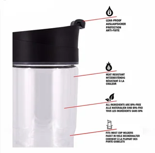 لیوان نوا از شیشه بوروسیلیکات دو جداره ساخته شده است که هم برای شما و هم برای محیط زیست مفید است. همچنین به راحتی در ماشین ظرفشویی تمیز می شود. این محصول شامل یک درب FLIP-TOP
