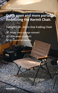 صندلی تاشو سریع باز شو Twilight L04 توسط Naturehike، مظهر راحتی و برای ماجراجویی های شما در فضای باز. این صندلی سبک وزن تنها 2.4 کیلوگرم وزن دارد و به لطف آلیاژ آلومینیوم و ساختار آهن به راحتی قابل حمل و در عین حال مستحکم است. پارچه فیبر 100٪ پلی استر دوام و نگهداری آسان را تضمین می کند. با ابعاد 61x53x70 سانتی متر و اندازه ذخیره سازی جمع و جور 72x17x17 سانتی متر، برای استفاده در حین حرکت عالی است. Twilight L04 که در رنگ مشکی براق یا قهوه ای کلاسیک موجود است، ظرافتی را به هر محیط بیرونی می بخشد. تجربه نشستن در فضای باز را با صندلی سفری Naturehike Twilight L04 ارتقا دهید.