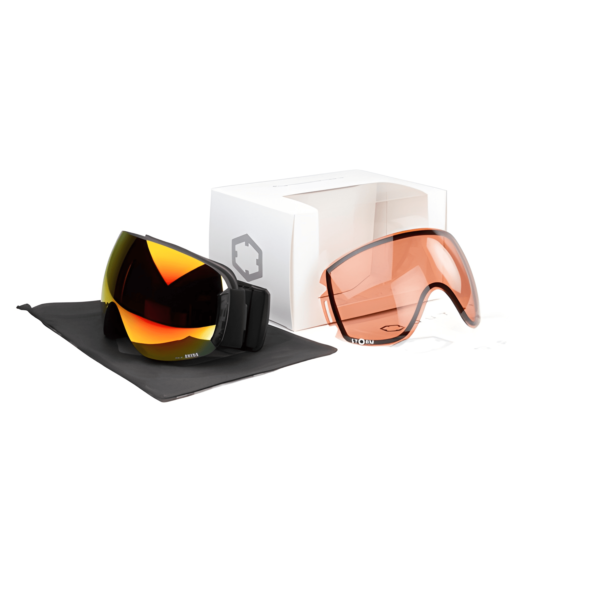 عینک اسنوبرد اوت آف دارای لنز پلاریزه فتوکرومیک می باشد که با هر شرایط نوری خود را تطبیق می دهد. در شرایط آب و هوایی بد رنگ لنز زرد و زمانیکه نور شدید است رنگ لنز به تیره تغییر پیدا می کند. و از چشمان شما در برابر پرتو خورشید و برف محافظت می کند.