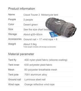 Could Tourer 2 ultra-light trave Motercycle double resident tent