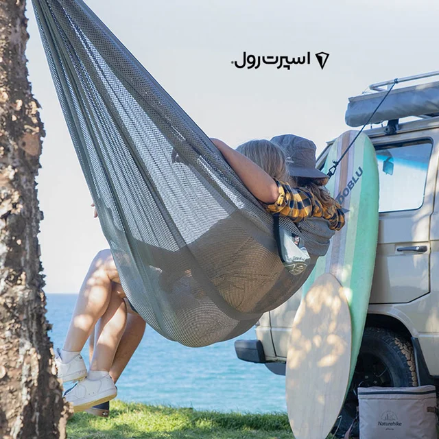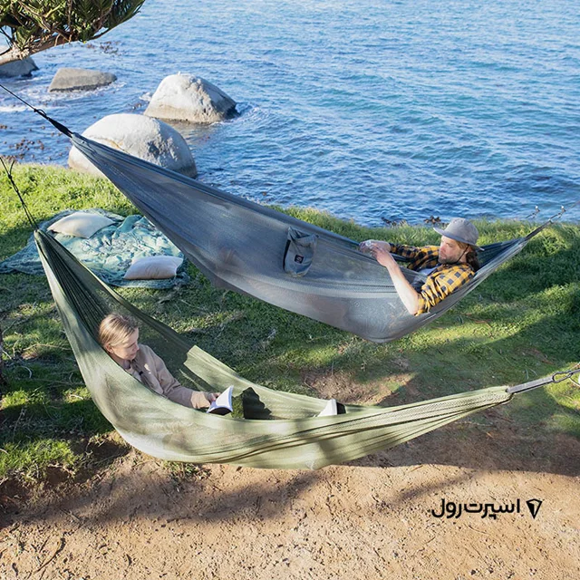 پارچه پلی استر ضد پارگی تنفس پذیر و لطیف.طراحی بی نظیر ضد واژگون شدن.سبک.سهولت در برپایی ننو.بسته بندی کم حجم.طناب های پلی استر با قطر 6 میلی متر در 2 طرف به همراه 2 عدد کارابین فلزی.دارای جیب کنار ننو