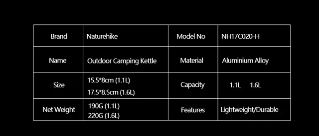كتري آلومينيومي نيچرهايك 1.1 ليتر و 1.6 ليتر NH17C020-H