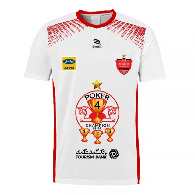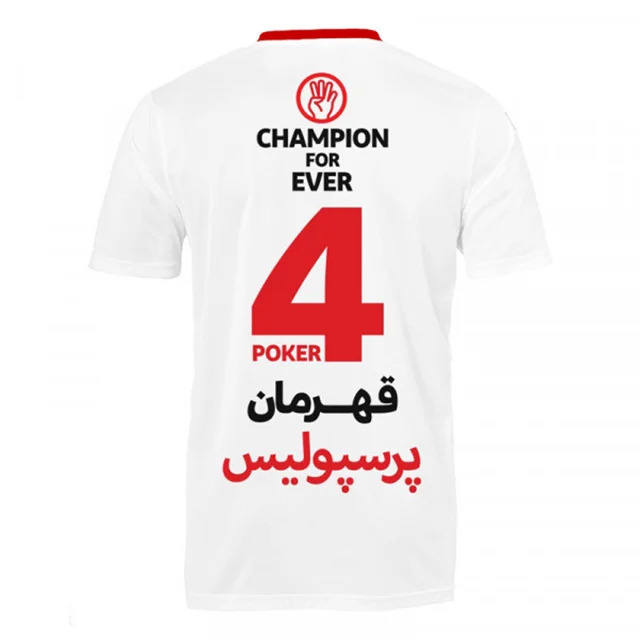 تیشرت قهرمانی پرسپولیس به رنگ طوسی طراحی شده است.چاپ بر روی لباس لوگو پرسپولیس به همراه ۴ جام قهرمانی متوالی و اسپانسرینگ باشگاه با تکنولوژی نوین چاپ سابلیمیشن بر روی لباس چاپ شده است. در قسمت پشت پیراهن نیز لوگو 4 و پرسپولیس قهرمان درج شده است. خرید لباس پوکر پرسپولیس مخصوص افرادی است که به دنبال یک لباس خاص و زیبا برای هواداری تیم پرسپولیس هستند تا بتوانند همیشه یاد 4 بار قهرمانی متوالی تیمشان در لیگ برتر را زنده نگه دارند خرید این لباس زیبا و هیجان انگیز تنها 3 دقیقه وقتتان را میگیرد