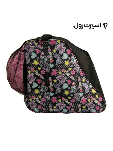 ساک اسکیت دخترانه طرحدار معرفی شده در این قسمت به رنگ مشکی صورتی و با طرح قلب و پروانه به بازارعرضه شده و ساک کفش اسکیت دخترانه صورتی پروانه ای از جنس پارچه برزنتی دوخته شده است. در ساک اسکیت دو دستگیره جهت حمل و نقل آسان تعبیه شده یکی در قسمت تاج ساک اسکیت و از جنس پلاستیک نرم ساخته شده است و دیگری بند دوشی با قابلیت تنظیم سایز بند ساک اسکیت با قیمت ارزان در فروشگاه اسپرت رول برای شما فراهم شده است. همچنین ساک کفش اسکیت دخترانه دارای محفظه کلاه جداگانه است که ساک را در دسته ساکهای کلاهدار اسکیت دخترانه قرار میدهد .از نظر سایز ساک مناسب یک جفت کفش اسکیت تا سایز 46+ ست ایمنی کامل و محافظ لگن در محفظه اصلی (کلاه نیز جا میشود اما از نطر بهداشتی نبایستی در کنار اسکیت و ست ایمنی باشد) قرار میگیرد و کلاه نیز در محفظه توری پشت ساک کفش اسکیت قرار میگیرد خرید ساک اسکیت دخترانه برای سهولت در جا به جایی و بهداشتی بودن مورد نیاز هر اسکیت سواری است.